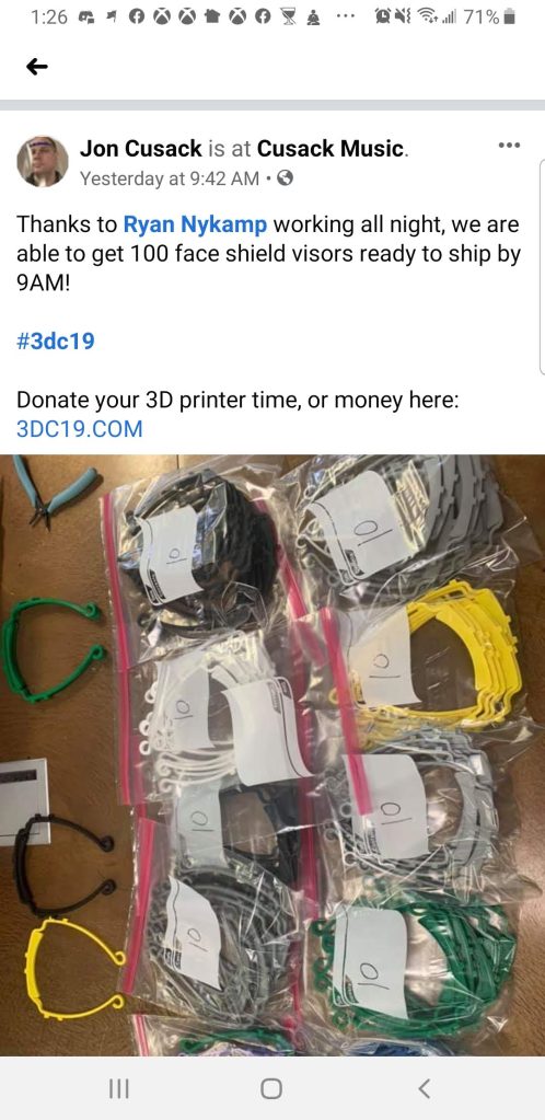 We heard a lot of great feedback that our movement gave people a purpose. Kids were waking up in the middle of the night to change over 3D prints. Engineers that were laid off were stopping printing baby Yoda’s and putting their machines to work. It was nice to know that I wasn’t the only one that felt lost against this invisible enemy.